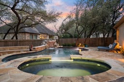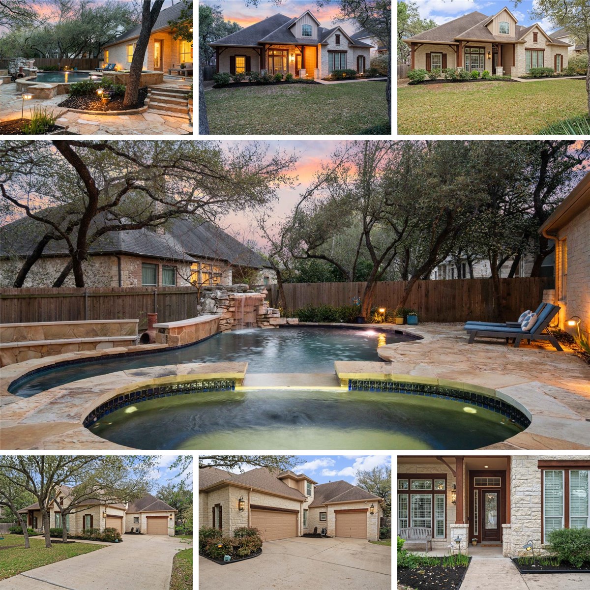 Beneath a canopy of mature oak trees, this beautifully crafted 4 bedroom 3.5bath 3500+ sqft home offers the perfect blend of comfort, elegance & resort-style outdoor living. Primarily a 1-story home w/ only game room & half bath upstairs, the layout provides the ease & convenience of main-level living. Rare 3-car garage offers abundant storage, complementing the home’s functional design. Inside, soaring ceilings, abundant natural light through beautiful shutters & timeless architectural details create a warm inviting atmosphere ideal for both everyday living & entertaining. Private office makes working from home effortless, while built-in desks near secondary bedrooms create the perfect homework space. The spacious living room w/ cozy fireplace flows seamlessly into a formal dining room perfect for holiday gatherings. The chef’s kitchen features granite countertops, stainless steel appliances, double ovens, soft-close cabinets/drawers offering tons of storage & a large center island designed. The serene primary suite offers a peaceful retreat w/ hardwood floors, pool view, & spa-inspired bath complete with an oversized walk-in shower and walk-in closet. On one side of the home two secondary bedrooms share a full bathroom. On the other side, is a guest bedroom suite w/ its own full bathroom.Step outside to your private backyard oasis featuring a sparkling pool with LED lighting, relaxing hot tub, covered stone patio, & outdoor kitchen equipped w/ Green Egg, griddle & mini fridge. Surrounded by lush landscaping & towering trees, it’s the perfect setting for both quiet evenings & lively gatherings w/ family & friends. Located just a short walk to Clayton Elementary School & community pool w/ splash pad & spiral slide, you'll enjoy access to 3 additional Circle C pools, along w/ playgrounds, parks, trails, & sports courts. All just minutes from everyday conveniences, this home offers refined living in one of Austin’s most beloved communities with exemplary schools!