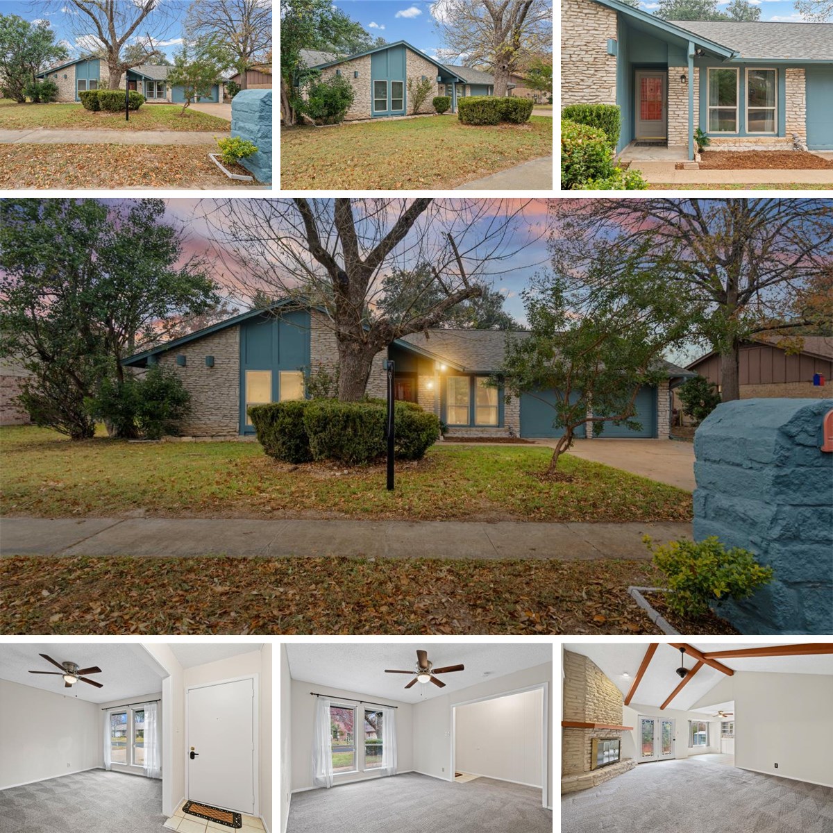 Discover mid-century charm in this one of a kind single-story ranch located in North Austin's Windsor Hills neighborhood. Framed by a majestic mature oak tree and a manicured lawn, this home offers timeless curb appeal and a serene, established neighborhood. With 3 bedrooms and 2 bathrooms, this home welcomes you with soaring vaulted ceilings, exposed wood beams, and a floor-to-ceiling stone fireplace that serves as a dramatic centerpiece for the open concept living area. The kitchen features a large window overlooking the backyard and a unique pass-through breakfast bar that keeps you connected to your guests. Off of the main living you are welcomed to the expansive primary suite with a separate seating area, full bathroom, large walk in closet and wood like flooring. The wood like floor continues seamlessly into the secondary bedrooms, which offer plenty of space for guests and large closets for extra storage. Off of the main living space are elegant French doors with custom stained-glass detailing that lead to an oversized patio and a massive, fully fenced backyard shaded by majestic mature oaks. Nestled on a generous lot just minutes from major employers like Apple and the Domain, as well as the scenic trails of Walnut Creek Metropolitan Park, this sanctuary offers an unbeatable balance of suburban tranquility and vibrant Austin accessibility.