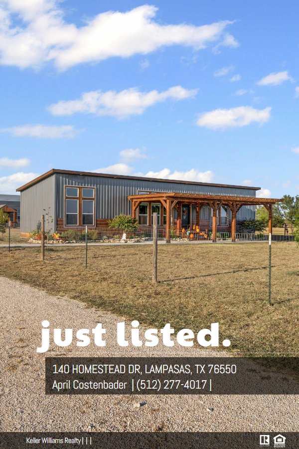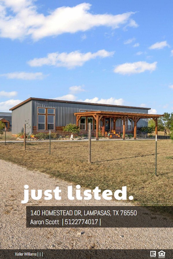 Imagine waking up to the peaceful sounds of nature, surrounded by breathtaking views, cattle, and rolling hills on this AG-exempt property. This stunning 2-bedroom, 2-bathroom home sits on over 5 acres of picturesque land with a half acre fenced in yard around the house, offering a serene retreat from the hustle and bustle of city life. The interior boasts an open-concept kitchen, dining, and living area perfect for entertaining. A large center island/breakfast bar, stainless steel appliances, abundant cabinetry, and recessed lighting complete the kitchen. The primary suite is a relaxing oasis, featuring a lovely front yard view and an en-suite bathroom with a soaking tub, separate tile shower, and dual vanities. With 1,188 square feet of living space, this home offers a perfect blend of rustic elegance and modern comfort. The property itself is a nature lover's paradise, with several trees, including Oaks, Cherry, Dogwood, and Magnolia, creating a stunning landscape. A 40' x 17' cedar pergola marks the front entrance, while the covered 12' x 24' back deck with outdoor lighting is perfect for unwinding and taking in the views. Additional features include a 20' x 30' RV cover behind the massive 20' x 60' x 16' detached garage. The property attracts abundant wildlife, and is minutes from the charming town of Lampasas, with its shops and restaurants. You'll also be within a short drive of Austin and Fort Hood. Designed for efficiency and durability, the home features dual-pane windows and is well-insulated, making it a comfortable retreat year-round. This charming mini barndo welcomes all creatures great and small - bring your horses, goats, chickens, and furry friends to enjoy the peace and quiet of the countryside. Surrounded by nature's beauty, abundant wildlife, and breathtaking starry skies, this haven offers the ultimate retreat.