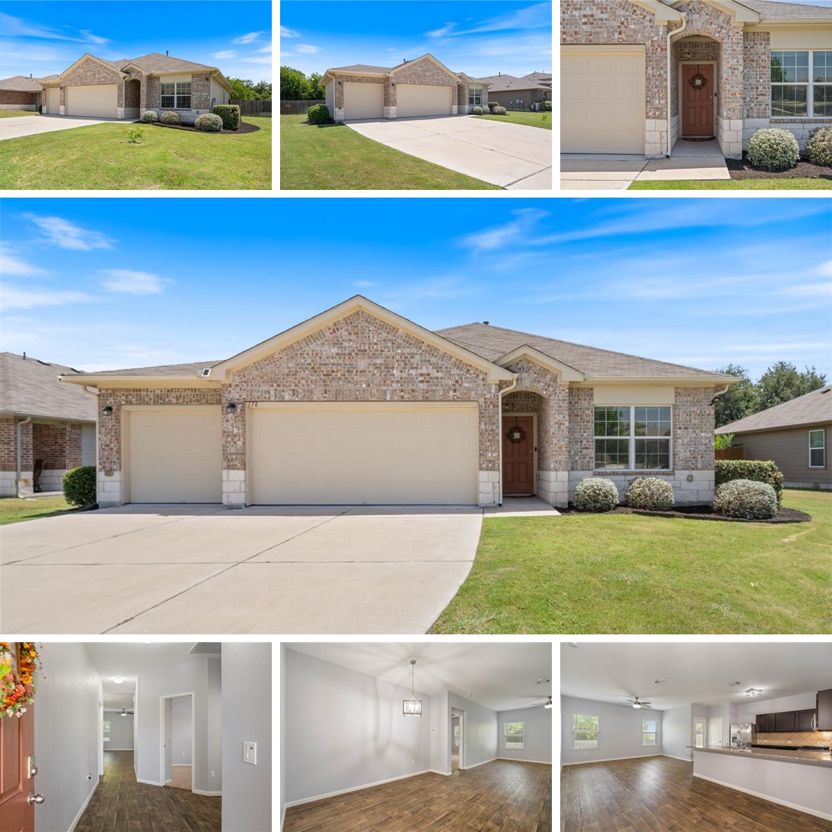 A charming 3-bed, 2-bath single-story home in Kyle, perfectly situated near parks, schools, shops, and restaurants with easy access to IH-35. The exterior boasts full gutters, a spacious 3-car garage, and a well-groomed front yard that's sure to impress. Inside, the open layout shines with high ceilings and abundant natural light throughout, creating a bright and airy atmosphere. The spacious living room features a ceiling fan and peaceful backyard views, seamlessly connecting to the dining and kitchen areas for effortless entertaining. The dining area is accentuated by a charming overhead light fixture, while the kitchen is equipped with a long breakfast bar, granite countertops, stainless steel appliances, and a pantry for ample storage. Direct access from the kitchen leads to the covered patio and fully fenced backyard, which offers a serene private space with no back neighbors - the perfect spot to unwind. Back inside, the primary bedroom is a relaxing retreat with a ceiling fan and an en-suite bathroom featuring a framed mirror, long vanity, a walk-in closet, and a walk-in shower. Each secondary bedroom boasts a ceiling fan and a walk-in closet, providing plenty of storage and comfort. Enjoy the perfect blend of comfort, convenience, and tranquility in this lovely Kyle home!