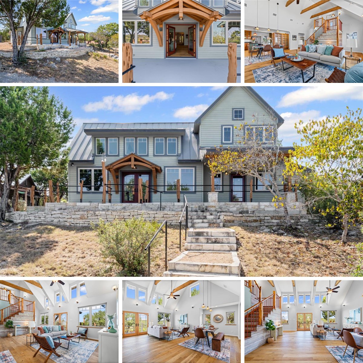 Perched atop one of Dripping Springs’ most picturesque hills, this one-of-a-kind property offers sweeping views that stretch for miles across the Texas Hill Country. Set on 10 pristine acres, the land itself is a natural masterpiece; rugged yet peaceful, with hand-cut trails winding through native trees, a seasonal creek, and open meadows rich with topsoil perfect for gardening or small-scale agriculture. The main residence (2272 sqft), a custom-built 2-bedroom, 2.5-bath home, blends rustic craftsmanship with artistic soul. Natural textures, warm wood finishes, and large windows frame the surrounding scenery, making every room feel like part of the landscape. Just steps away, a charming guest cabin (677 sqft) offers a full kitchen, laundry, bedroom, and bath - ideal for guests, extended family, or even short-term rental possibilities. For creatives, dreamers, and doers alike, the property also includes a spacious studio (1410 sqft) - a blank canvas perfect for art, yoga, & music - or even a large conditioned space with its own full bath for more industrious pursuits such as an office, business space or even converted to additional living space, rental or bed and breakfast. Separate storage buildings provide room for every tool and toy you could ever need. As evening falls, unwind in your private gazebo overlooking the ravine, watching the Texas sunset fade into a sky full of stars. Whether you’re seeking inspiration, solitude, or a place to share with family and friends, this property delivers peace, privacy, and possibility in equal measure.