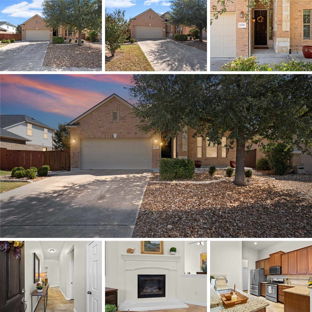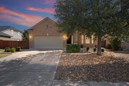 Escape to serenity in this stunning 3-bedroom, 2-bathroom single-story home in Leander. The beautifully landscaped front yard features mature trees, xeriscape elements, and a charming front porch perfect for relaxation. Upon entering, you'll notice the well-lit entryway with tile flooring and high ceilings throughout. The functional layout boasts not one, but two dining areas, a formal dining space and a sunny breakfast area adjacent to the kitchen. The heart of the home, the kitchen, features granite countertops, ample bar space, stainless steel appliances, and a pantry for organized living. The adjacent breakfast area has a charming overhead light fixture and offers direct access to the lush, fully fenced backyard and covered patio space, perfect for outdoor entertaining and/or relaxing. The living room is a cozy retreat with a wall of windows, ceiling fan, recessed lighting, and a warm fireplace, ideal for chilly evenings. The spacious primary bedroom boasts a high ceiling, ceiling fan, and a roomy sitting area with potential for conversion to suit your needs. The luxurious en-suite bathroom features a framed mirror, dual vanities, a walk-in closet, and an expansive walk-in shower with a sitting area and large window. The community offers a playground, pool, and walking/biking trails, and the home is located close to many schools and parks, making it an ideal location. With its perfect blend of style, functionality, and comfort, this home is a must-see for anyone looking to call Leander home.