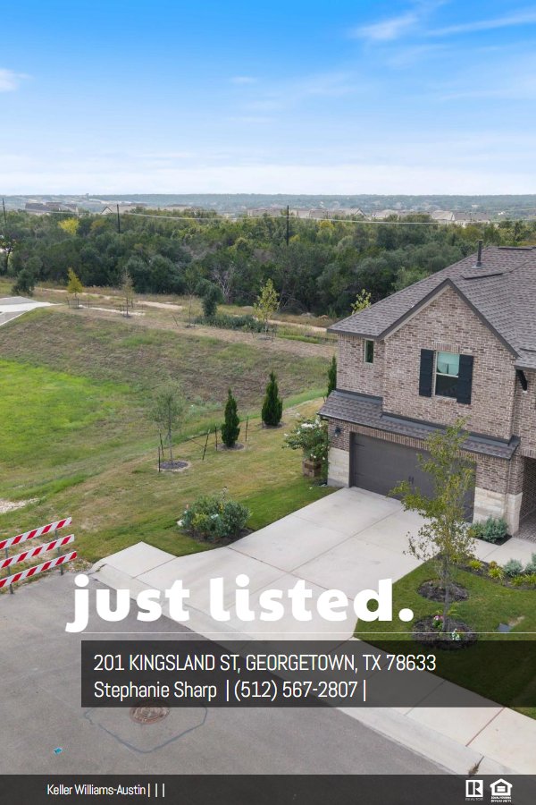Experience the perfect blend of luxury and tranquility in this stunning 2-story home, nestled in the desirable Parmer Ranch subdivision of Georgetown. Built in 2024, this 4 bed, 3.5 bath residence boasts a serene backdrop of a greenbelt, offering breathtaking views and a sense of seclusion. The home's exterior is beautifully landscaped with a well-groomed front yard and a secluded front porch, perfect for relaxing and taking in the surroundings. Upon entering, you'll be greeted by a stunning view of the spiral staircase and then the open, airy, and spacious layout. The living room is a highlight, featuring tile flooring, a high vaulted ceiling with wooden beams, a ceiling fan, and an abundance of natural light pouring in from the windows along the back wall. The open layout seamlessly connects the living room to the dining and kitchen areas, making entertaining effortless. The kitchen is a chef's dream, with quartz countertops, a center island/breakfast bar, stainless steel appliances, a pantry, and recessed lighting. The primary suite is a serene retreat, situated on the main level with a high tray ceiling, ceiling fan, and a stunning backyard view. The en-suite bathroom features separate vanities, a deep soaking tub, a walk-in shower, and a spacious walk-in closet with access to the laundry room. The second level boasts three additional bedrooms, each with walk-in closets, and two with en-suite bathrooms. A roomy, sun-filled den offers flexibility and can be converted to suit your needs. The fully fenced backyard is perfect for outdoor living, with a nice-sized patio featuring a ceiling fan, ideal for relaxing or entertaining. Don't miss this incredible opportunity to own a piece of Parmer Ranch!