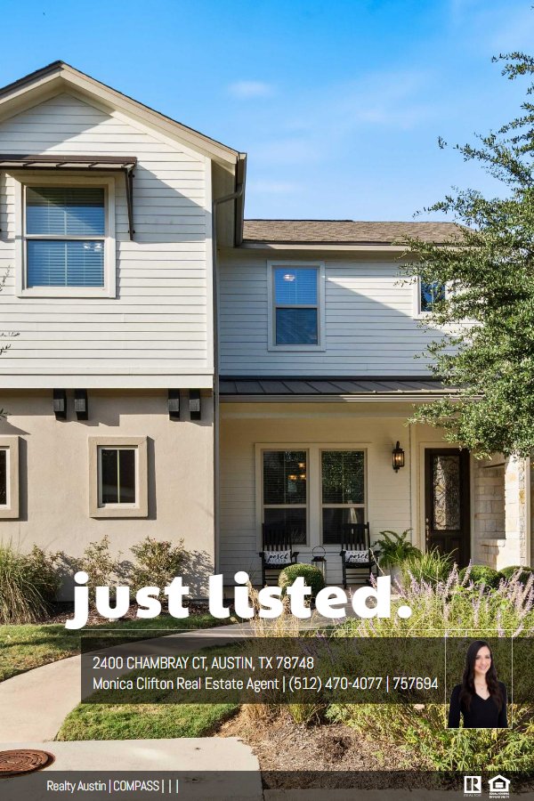 Discover 2400 Chambray Ct. located in Gabardine Gardens of Shady Hollow, a highly sought-after, gated community in Southwest Austin, offering a unique and desirable "cottage-like" standalone condo. Enjoy beautiful curb appeal and a serene setting tucked in a quiet cove, with the backyard overlooking green space and just steps from the community pool. The first floor boasts an open-concept design, seamlessly connecting the sizable dining room, spacious kitchen, and living area, all illuminated by an abundance of natural light. This charming 2 story home provides 2,007 square feet of comfortable living space featuring an oversized primary suite with a large sitting room, 2 bedrooms, 2.5 baths and 2 car garage. The kitchen is a chef's delight with granite countertops, soft-close, shaker-style cabinets with sleek hardware, stainless steel appliances, a double oven, center island, and plentiful cabinet and counter space. The kitchen also features the perfect spot to use as a work space with a built in desk and extra cabinet space. A half bath with a stylish tiled wall and sizable laundry room round out the first floor. Upstairs you will find the oversized primary suite with an attached, spacious sitting area ideal for a home office or 2nd living space, an ensuite bath with dual sinks, walk-in shower and a walk-in closet. Also located upstairs are two additional bedrooms, both with walk in closets and a 2nd full bathroom. Come experience true "lock and leave" living with HOA covering landscaping, exterior maintenance and upkeep, common area maintenance, and access to a beautiful pool in a serene setting. This quaint community is zoned for top rated schools, including Baranoff Elementary, Bailey Middle School, and Bowie High School.