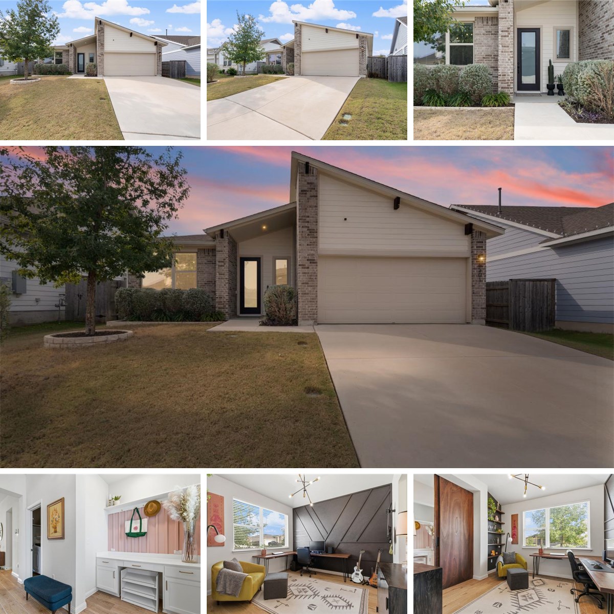 Updated, move-in ready single-story home with 3 bedrooms and 2 baths, offering extensive builder and after-market upgrades throughout. Interior features include wood-look tile flooring, quartz countertops, designer lighting, accent walls, built-in office shelving, a fully remodeled primary bath, and a functional mudroom designed for everyday convenience. The backyard has been thoughtfully upgraded with an extended concrete back porch, a pergola, and a shade sail over the cowboy pool, creating a comfortable and stylish outdoor space ideal for relaxing or entertaining. Additional exterior enhancements include stone landscaping and zero-scaped side yards for low-maintenance living. The community features two pools, a gym, clubhouse, playground, and walking trails. Ideally located with a short drive to the airport, approximately 20 minutes to downtown Austin, and close to the new and upcoming shopping in Easton Park—all while benefiting from a low tax rate. Truly move-in ready and designed to be enjoyed from day one.